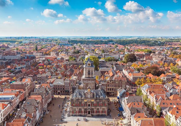 Delft ist eine Stadt in Niederlanden, die sich in der Provinz Zuid-Holland befindet. Sie liegt zwischen den größeren Städten Rotterdam und Den Haag. Delft ist bekannt für ihre historische Altstadt, die von Kanälen, malerischen Gassen und gut erhaltenen Gebäuden geprägt ist. Die Stadt ist berühmt für ihre Delfter Keramik, die seit dem 16. Jahrhundert hergestellt wird, sowie als Geburtsort des berühmten Malers Johannes Vermeer. Historisch gesehen hat Delft eine bedeutende Rolle in der niederländischen Geschichte gespielt, insbesondere während des Goldenen Zeitalters im 17. Jahrhundert, als sie ein wichtiges Zentrum für Handel und Kunst war.
