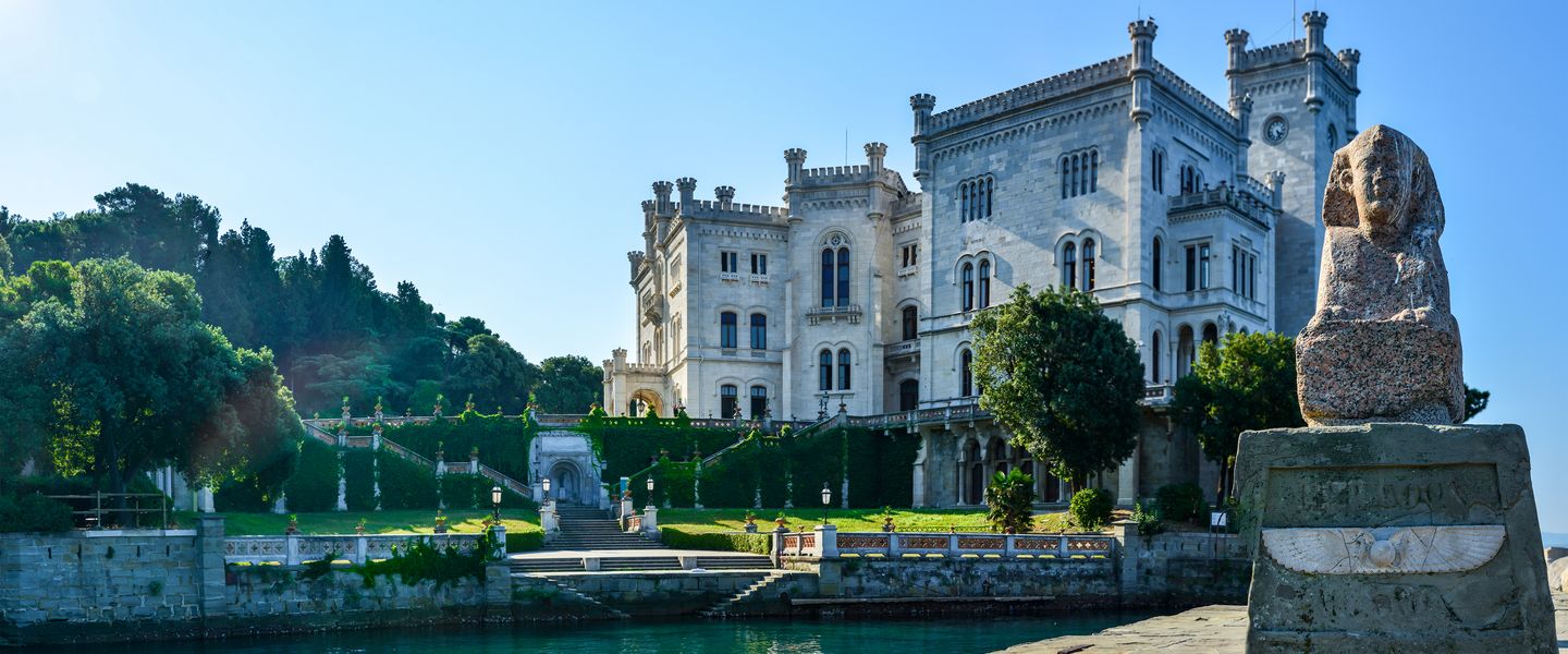 Am Morgen erwartet Sie das märchenhafte Schloss Miramare – einst Residenz von Erzherzog Ferdinand Maximilian und Kaiserin Charlotte. Die prächtige Anlage mit ihrem weitläufigen Park liegt malerisch auf einem Felsvorsprung direkt über dem Meer. Anschließend geht es weiter nach Triest, einer Stadt zwischen Mittelmeer und Mitteleuropa. Sie spazieren durch elegante Plätze, vorbei am Canal Grande und genießen die besondere Mischung aus österreichischer Geschichte und italienischer Lebensfreude.
